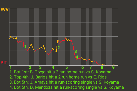 Jose Amaya was 3 for 5 with 3 singles for Pittsburgh. The 28-year old first baseman had a key at-bat in the bottom of the fifth. With one out and runners on 1st and 3rd, he broke a 2-2 tie with a run-scoring single off Shunsho Koyama. It was his 119th hit of the season.